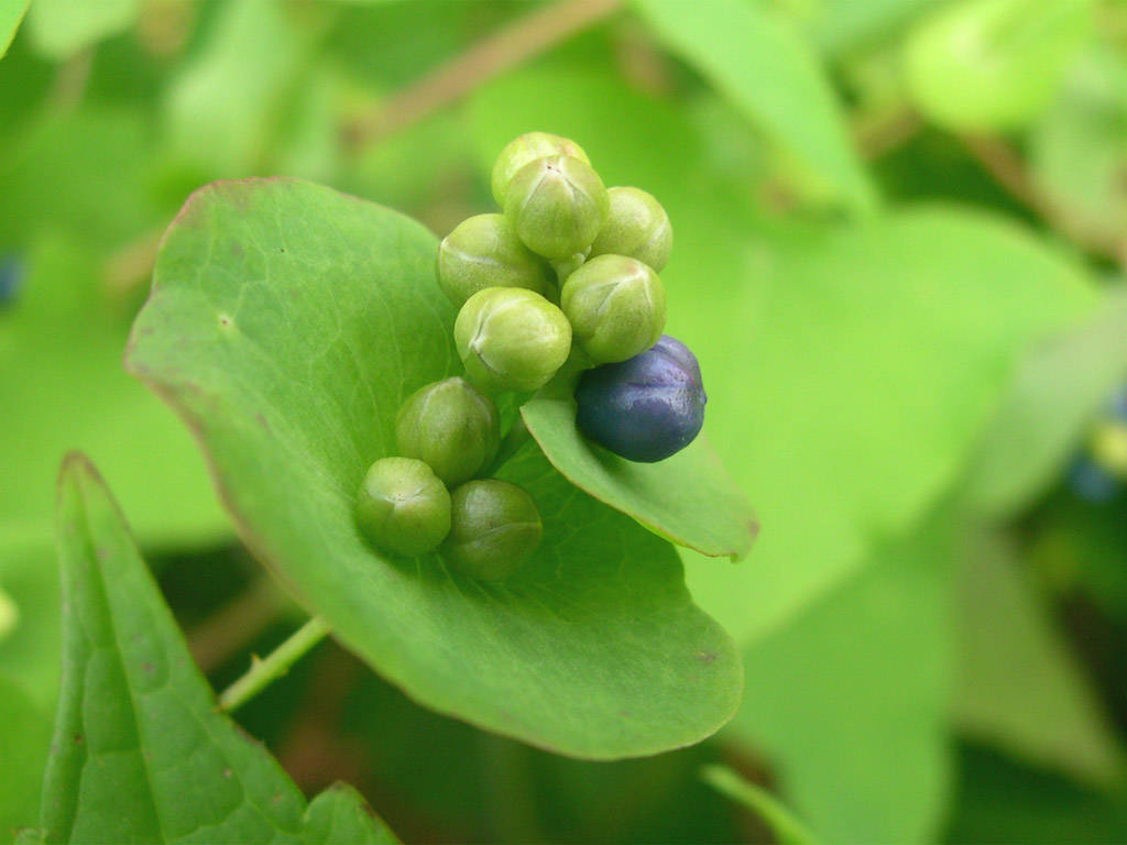 葉の脇にムカゴができます。大きくて綺麗な花です。 |