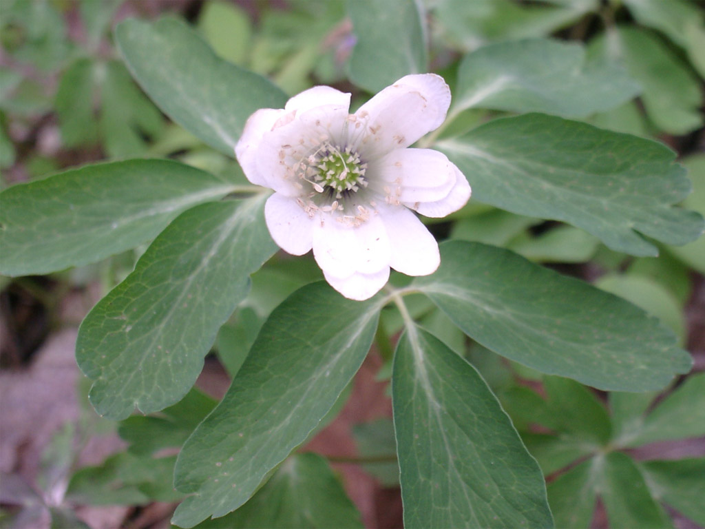 イチリンソウの仲間です。白い花が美しい。 |