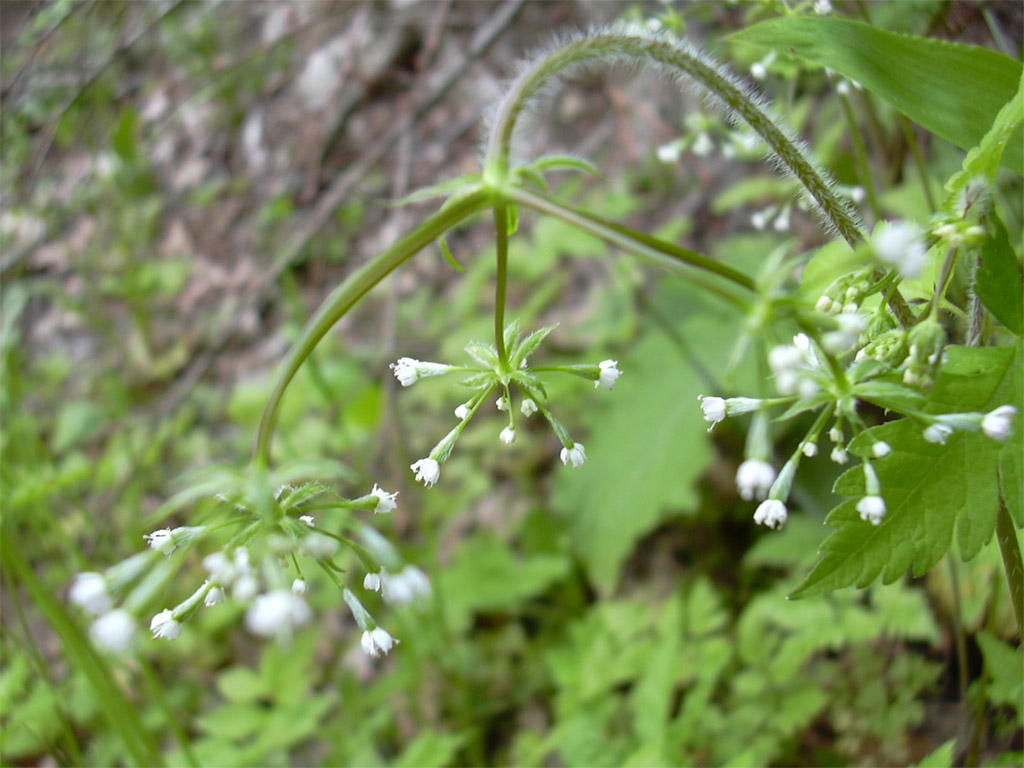 白い花が可憐です。エンレイソウやナニワズ、エゾエンゴサクもたくさん生えていました。 |